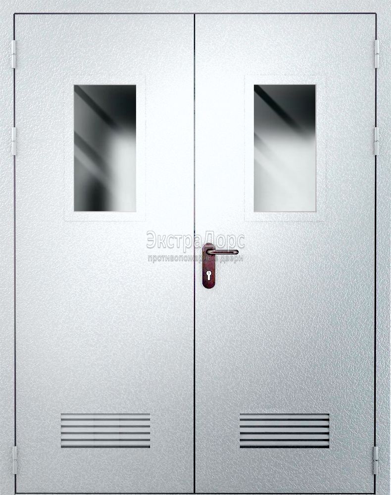 Двухстворчатая огнеупорная дверь EI 60 с выпадающим порогом, стеклом и решеткой в Орехово зуево