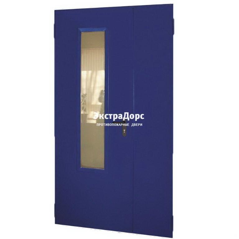Дверь с выпадающим порогом противопожарная EI 90 двупольная синяя со стеклом в Орехово зуево