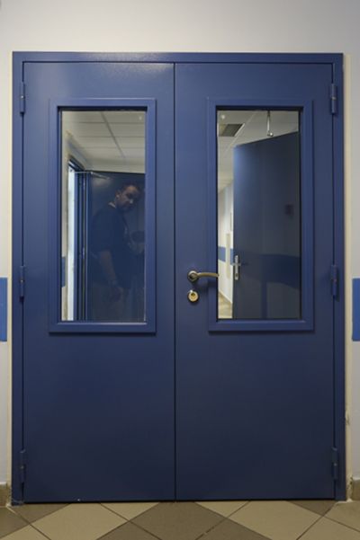 Противопожарная алюминиевая дверь синего цвета в Орехово зуево