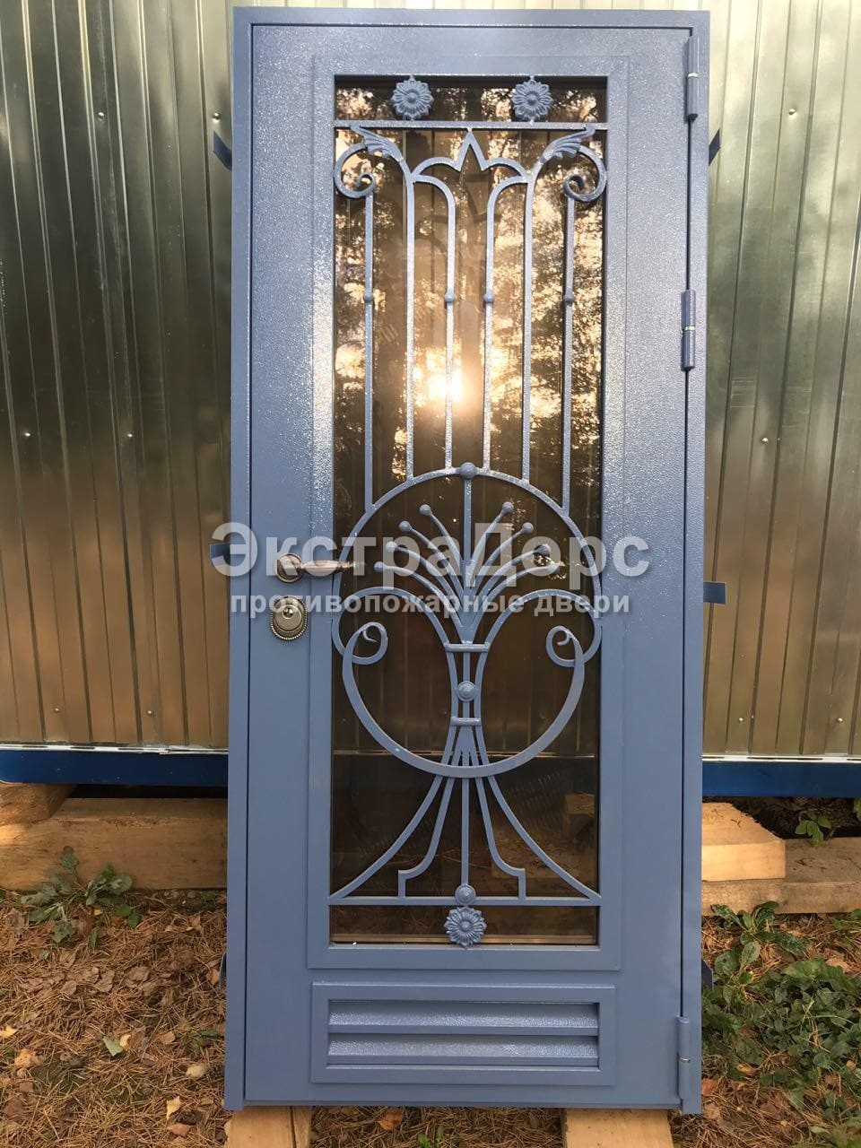 Остекленная противопожарная дверь с вентиляционной решеткой и ковкой в Орехово зуево
