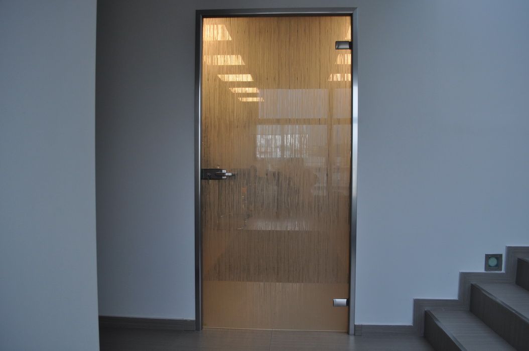 Противопожарная безрамная дверь со стеклом в БЦ в Орехово зуево